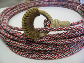 4 strand poly rope has extra weight and a smoother overall texture. This is a durable blended poly ranch rope. The rawhide neck Honda adds extra weight making it easier to handle, especially in the wind.